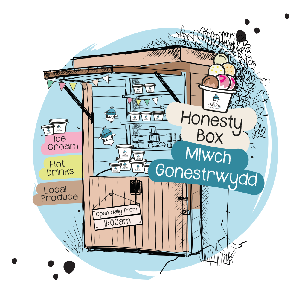 We offer a great selection of locally sourced items like honey, jams, chutneys, ketchup, and crisps. And for the coffee lovers, we even have a coffee machine to fuel your adventure while enjoying your ice cream!